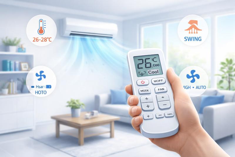 Đặt 26–28°C để mát và tiết kiệm điện.