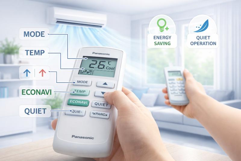 Điều khiển Panasonic dễ sử dụng nếu bạn nắm rõ các nút cơ bản. Chỉ cần chọn đúng chế độ, nhiệt độ hợp lý và tận dụng các tính năng như POWERFUL hoặc ECONAVI, bạn sẽ giúp điều hòa mát nhanh hơn, vận hành êm và tiết kiệm điện hiệu quả.
