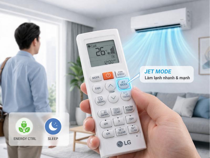 - Nhấn JET MODE để làm lạnh nhanh khi mới vào phòng