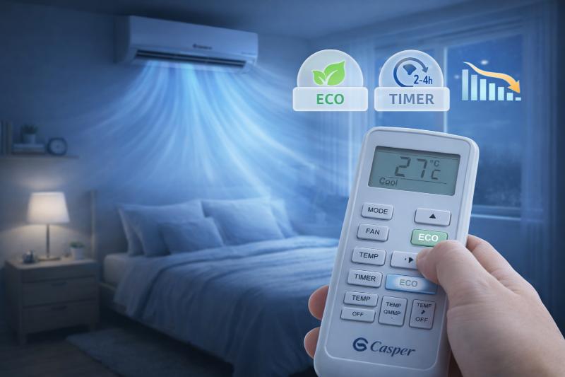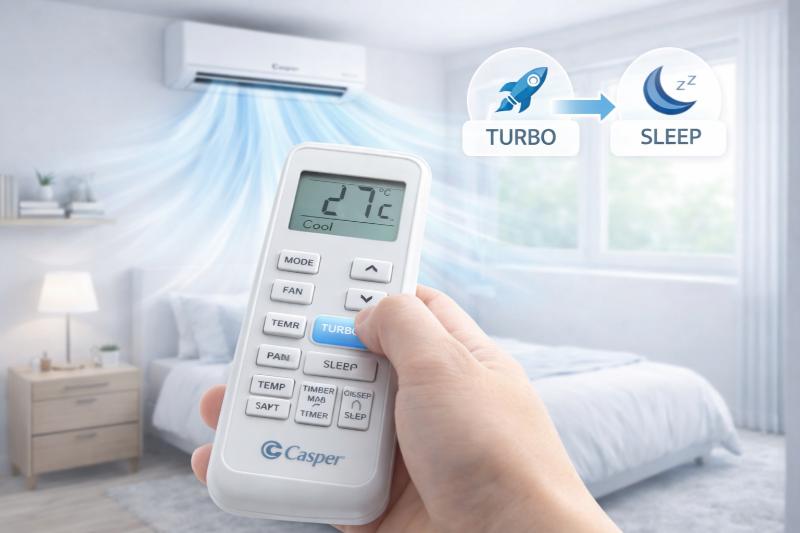 Điều khiển Casper rất dễ sử dụng. Chỉ cần chọn đúng chế độ, đặt nhiệt độ hợp lý và tận dụng TURBO hoặc SLEEP đúng lúc, bạn sẽ giúp điều hòa mát nhanh, vận hành ổn định và tiết kiệm điện hiệu quả.