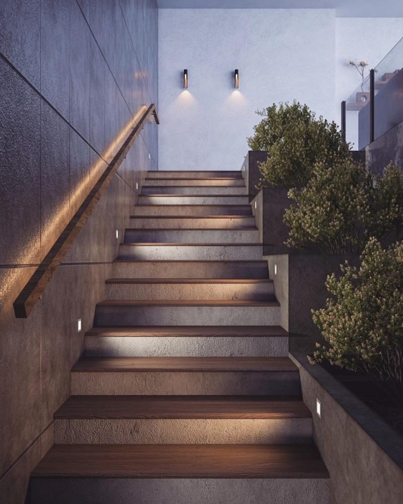Đánh dấu vị trí bóng đèn để ánh sáng phân bố đều trên cầu thang. Tránh đặt đèn quá xa hoặc tập trung vào một điểm gây vùng tối.