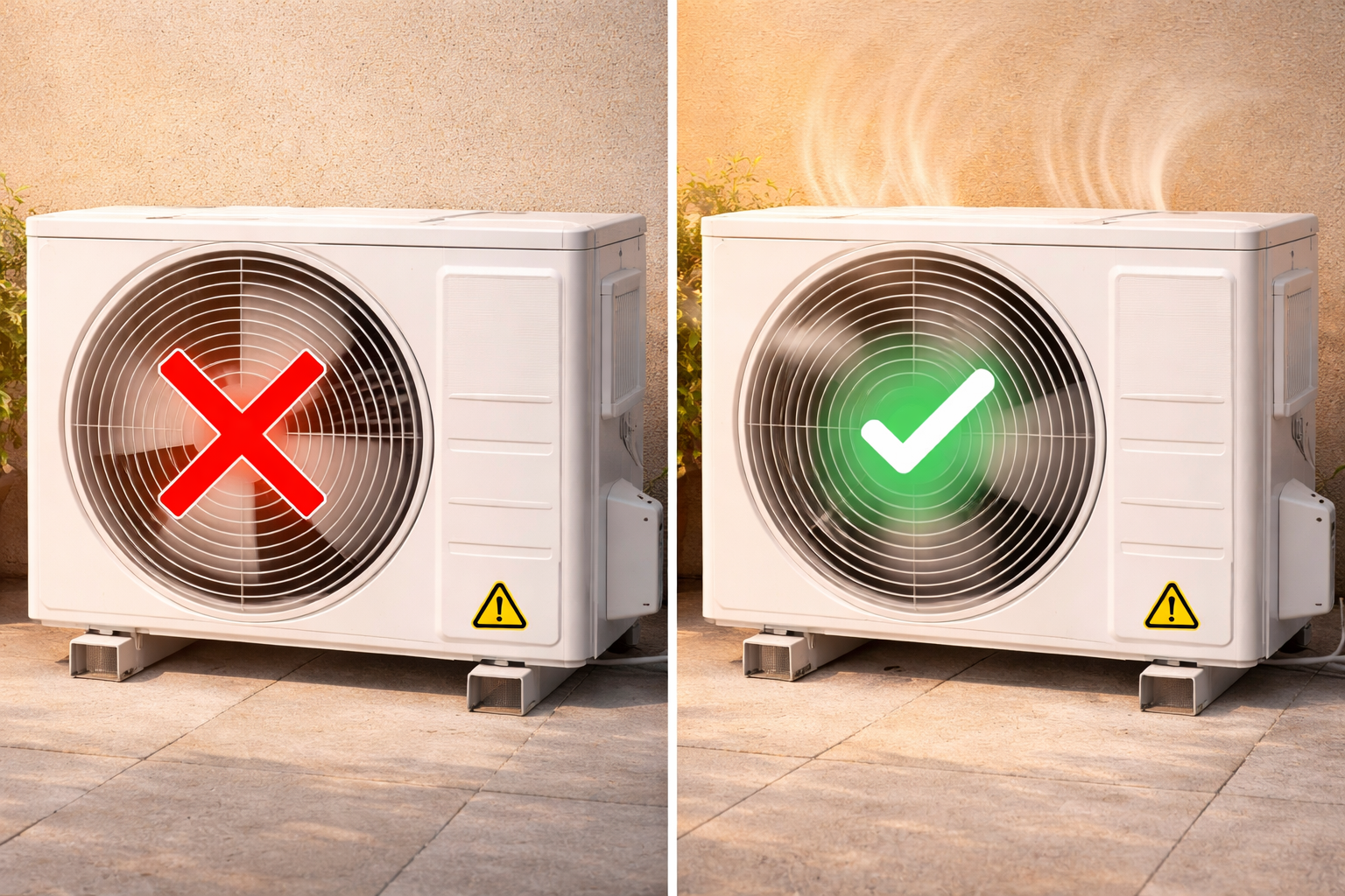 Nếu quạt dàn nóng không hoạt động, nhiệt không được đẩy ra ngoài, khiến chu trình làm lạnh bị ngưng trệ và tình trạng điều hòa không mát kéo dài.