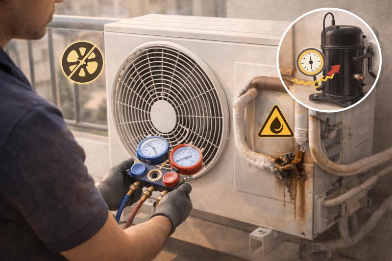 Có thể máy nén, motor quạt hoặc các thiết bị quan trọng khác có thể đã bị hư hỏng, gây ra sự cố không khởi động được máy lạnh. Vấn đề này thường sẽ cần sự can thiệp của một kỹ thuật viên chuyên nghiệp để sửa chữa hoặc thay thế các thiết bị hư hỏng.