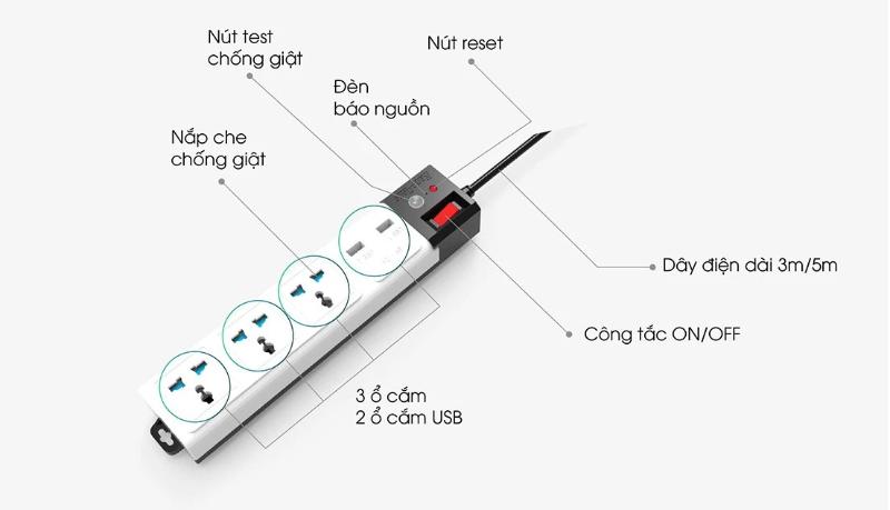 | Chức năng chính | Chỉ có nhiệm vụ cấp điện đơn thuần cho các thiết bị như quạt, đèn, sạc điện thoại. | Vừa cấp điện, vừa tích hợp mạch cảm biến dòng rò (RCD) để phát hiện và ngắt điện tự động khi có sự cố. |