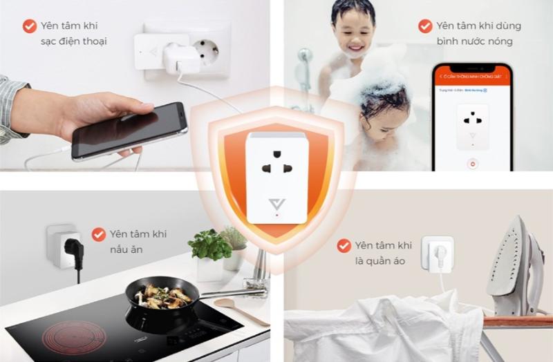 | Ổ cắm chống giật thông minh (Smart Plug) | – Kết nối Wi-Fi, điều khiển từ xa.- Theo dõi điện năng tiêu thụ.- Tự ngắt khi quá tải, rò điện hoặc nhiệt độ cao.- Có cảnh báo qua điện thoại. | – Giá cao hơn, cần kết nối mạng ổn định.- Không phù hợp với người dùng lớn tuổi. | Nhà thông minh, căn hộ cao cấp, văn phòng hiện đại. | Philips Smart Plug, Panasonic Smart, Xiaomi Smart Socket | 500.000 – 950.000 |