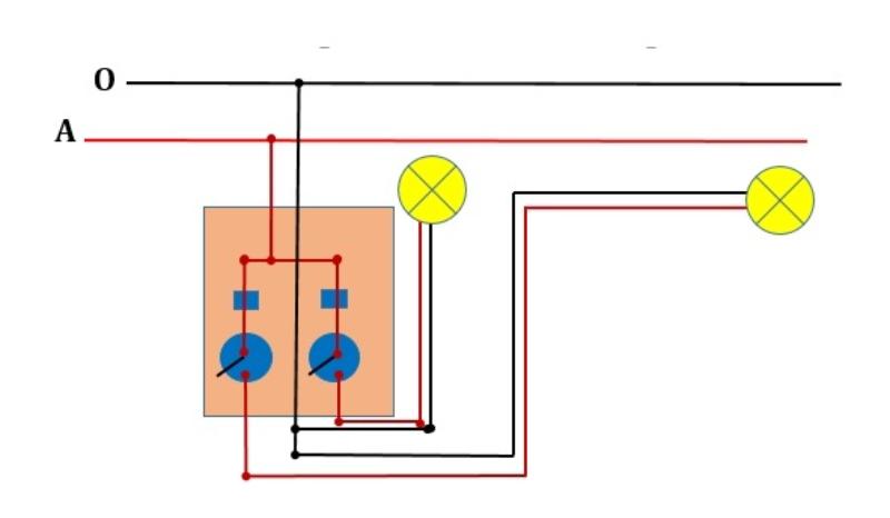 Mạch điện cầu thang 2 công tắc 2 bóng đèn