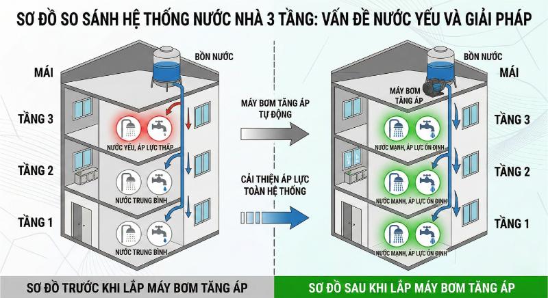 Áp suất nước không đủ cho nhà cao tầng