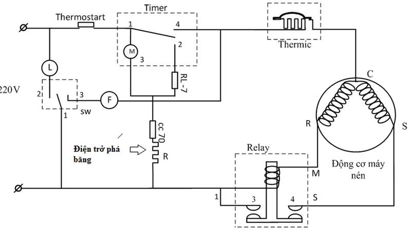 Sơ đồ mạch điện tủ lạnh cơ