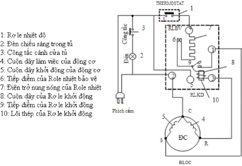 Các linh kiện chính trong sơ đồ mạch điện tủ lạnh